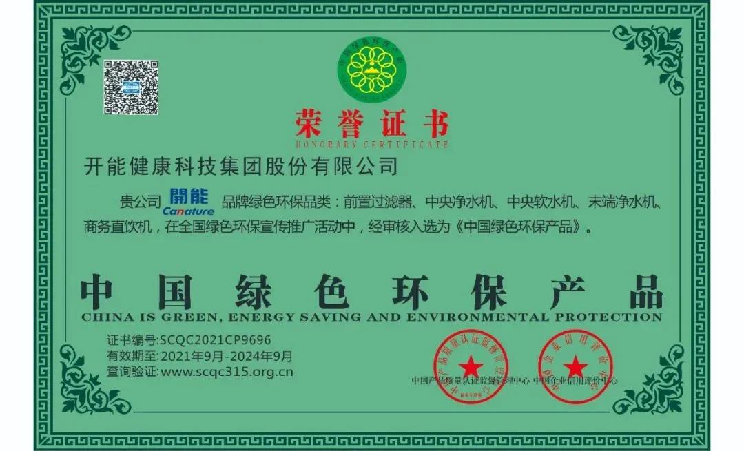 開能健康 | 踐行環保,榮獲“中國綠色環保產品”認證證書