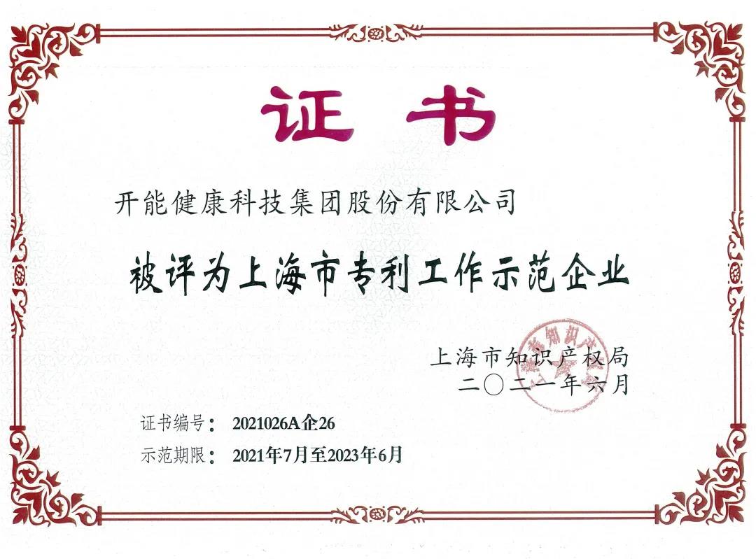開能健康 | 馭創(chuàng)新之力,開能健康榮獲上海市專利工作示范企業(yè)榮譽(yù)稱號(hào)