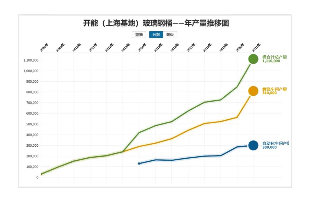 先來(lái)看一組數(shù)字:2007年,開能上海制造基地第1只玻璃鋼桶試制成功;2021年,上海制造基地玻璃鋼桶年產(chǎn)超1,000,000只,同比增長(zhǎng)43%,累計(jì)生產(chǎn)玻璃鋼桶達(dá)7,000,000只。從這組簡(jiǎn)單的數(shù)字當(dāng)中可以看到,作為一家制造型企業(yè),開能健康始終堅(jiān)守品質(zhì),深耕創(chuàng)新,打造企業(yè)制造核心競(jìng)爭(zhēng)力,從1到1,000,000的過(guò)程中,蘊(yùn)含著無(wú)數(shù)開能人的辛勤耕耘和堅(jiān)持不懈。