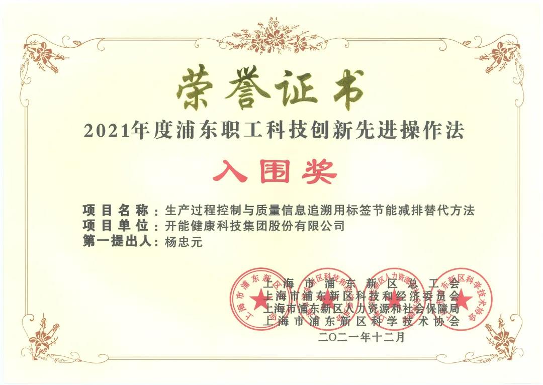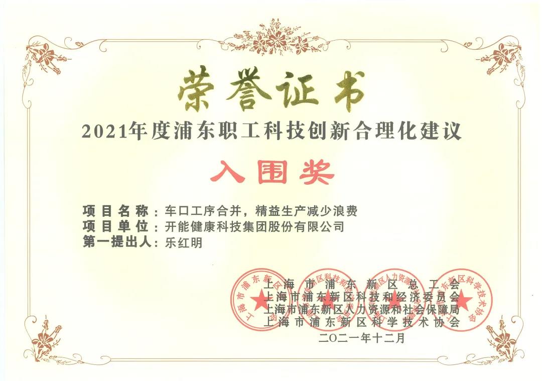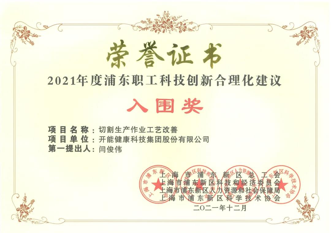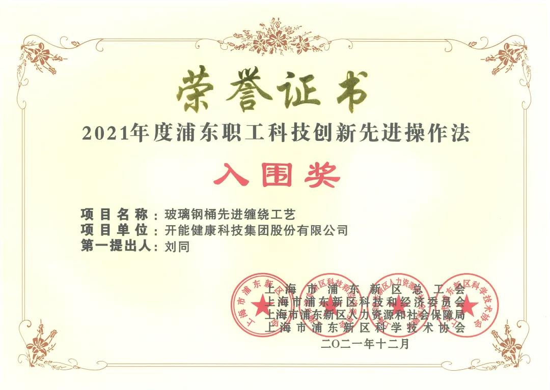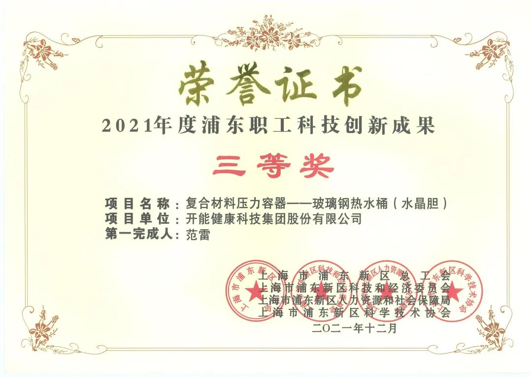 2022-01-27日前,在2021年度浦東職工科技創(chuàng)新成果、先進(jìn)操作法、合理化建議及工人發(fā)明家、科技創(chuàng)新英才評(píng)選活動(dòng)中,開能健康科技集團(tuán)股份有限公司(下文簡稱:開能健康)共獲得7項(xiàng)獎(jiǎng)項(xiàng),展示了開能工匠不斷進(jìn)取的精神,體現(xiàn)了開能智造不斷提升的標(biāo)準(zhǔn)。