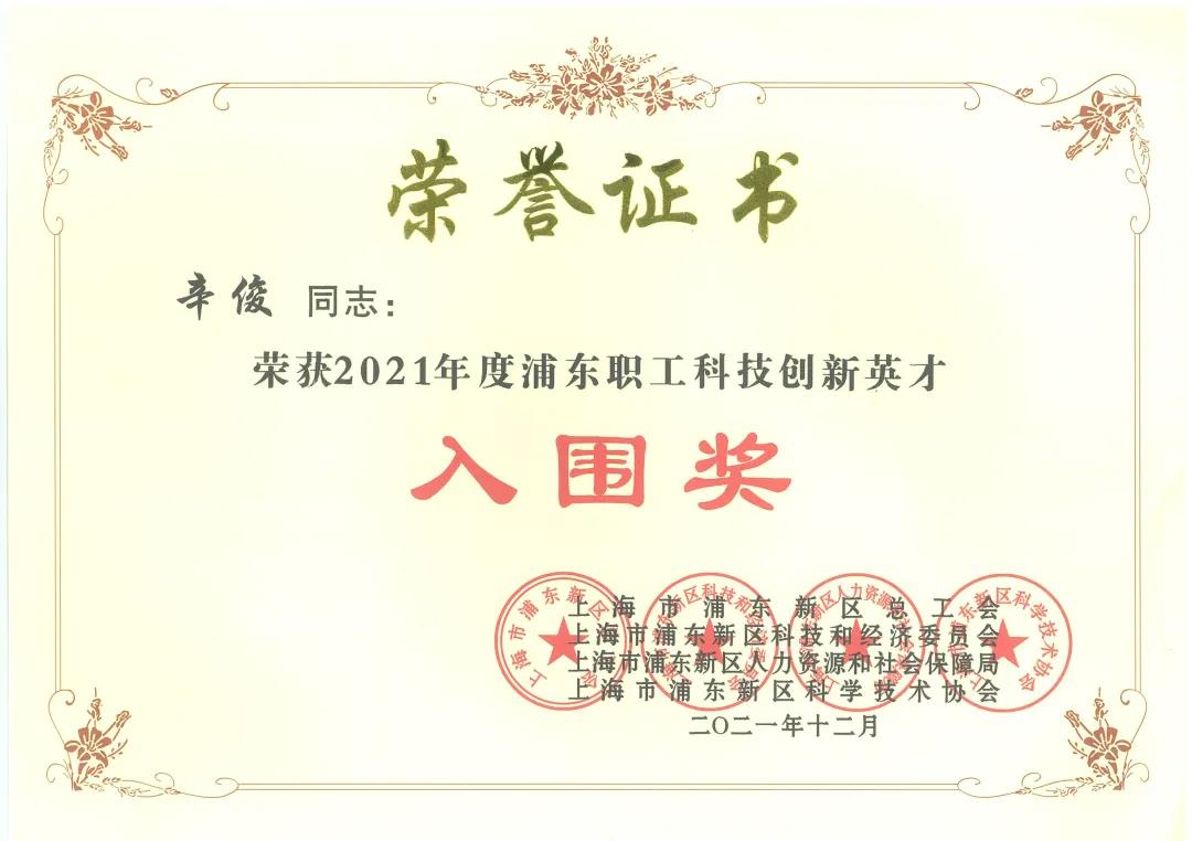 辛俊 榮獲2021年浦東職工科技創(chuàng)新英才入圍獎(jiǎng)
