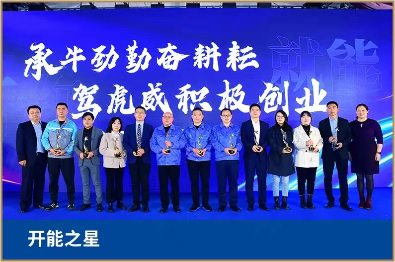 會議首先進行2021年度優秀員工表彰環節,分別頒發先進團隊、先進員工、開能之星、優秀員工、董事長特別獎,獲獎團隊和個人依次登臺領獎,這一份份沉甸甸的榮譽,既是對過去一年辛勤努力的肯定,也是對當下一年發展的鼓舞。