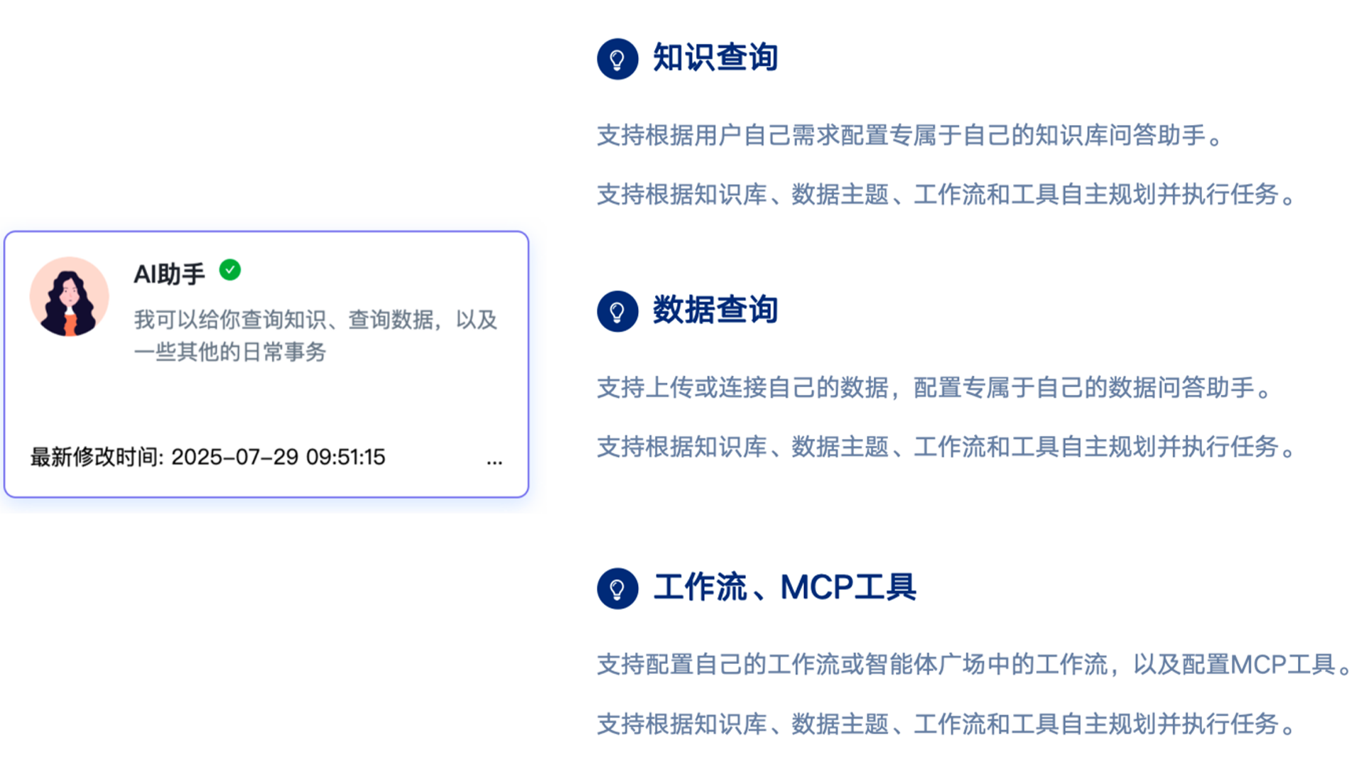 我們不僅要應(yīng)對當(dāng)前的挑戰(zhàn),更要為未來五年的數(shù)字化轉(zhuǎn)型打下堅實基礎(chǔ)。數(shù)字員工平臺具備自主規(guī)劃和定義Agent的能力,通過培訓(xùn),普通員工可以掌握AI搭建的基礎(chǔ)技能。在IT團隊的支持下,AI能力將得以在各個部門廣泛傳播。此外,通過模塊化的組合,不同的Agent能夠相互協(xié)作,形成強大的整體協(xié)同效應(yīng)。